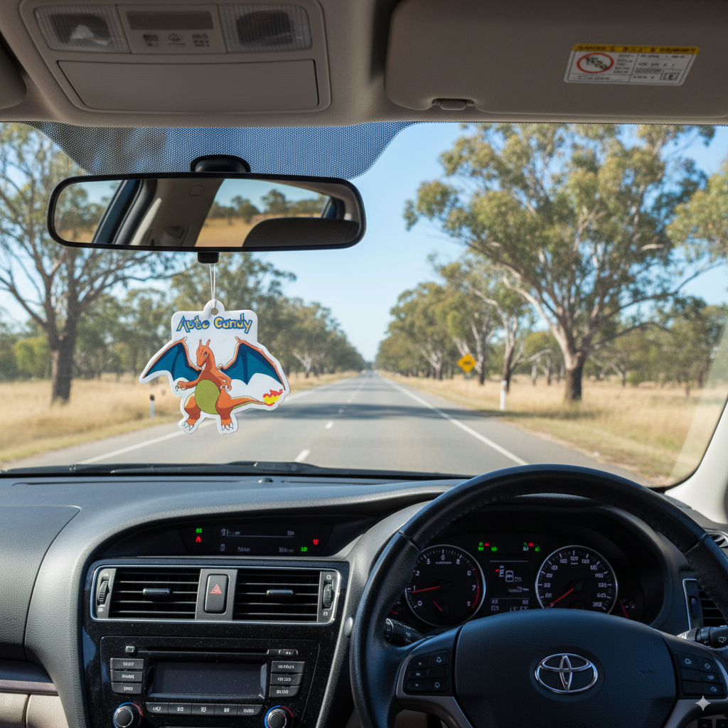 Charizard Car Air Freshener : Auto candy is changing the way we look at air fresheners. Add some character to your windscreen with our selection of unique designs, all made from only the best ingredients to provide a fresh, long lasting fragrance experience that will sweeten up your mood.