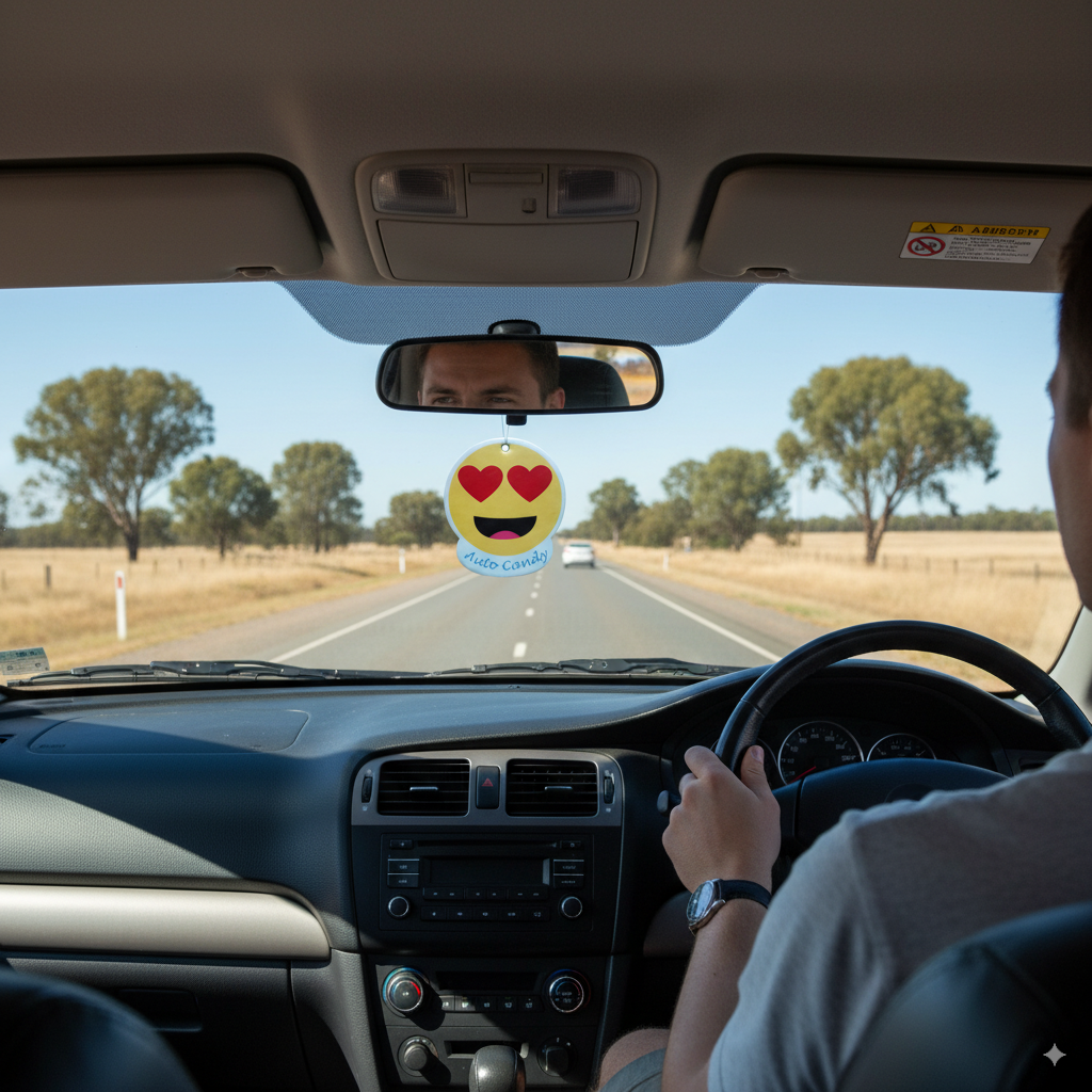 Love Emoji Car Air Freshener : Auto candy is changing the way we look at air fresheners. Add some character to your windscreen with our selection of unique designs, all made from only the best ingredients to provide a fresh, long lasting fragrance experience that will sweeten up your mood.
